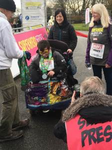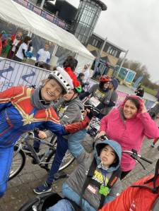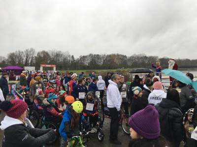 A team of our children & young people, their families and Brunel staff took part in the Superhero Tri event at Dorney Lake, Windsor. The event, which was sponsored by Marvel, consisted of a 1km or 5km walk, bike or wheel supported by paralympians and celebrities. The team was rewarded with hot chocolate, gingerbread decorating, an amazing choir and even Father Christmas on his BMX. It was a fantastic event and everyone had a great time.